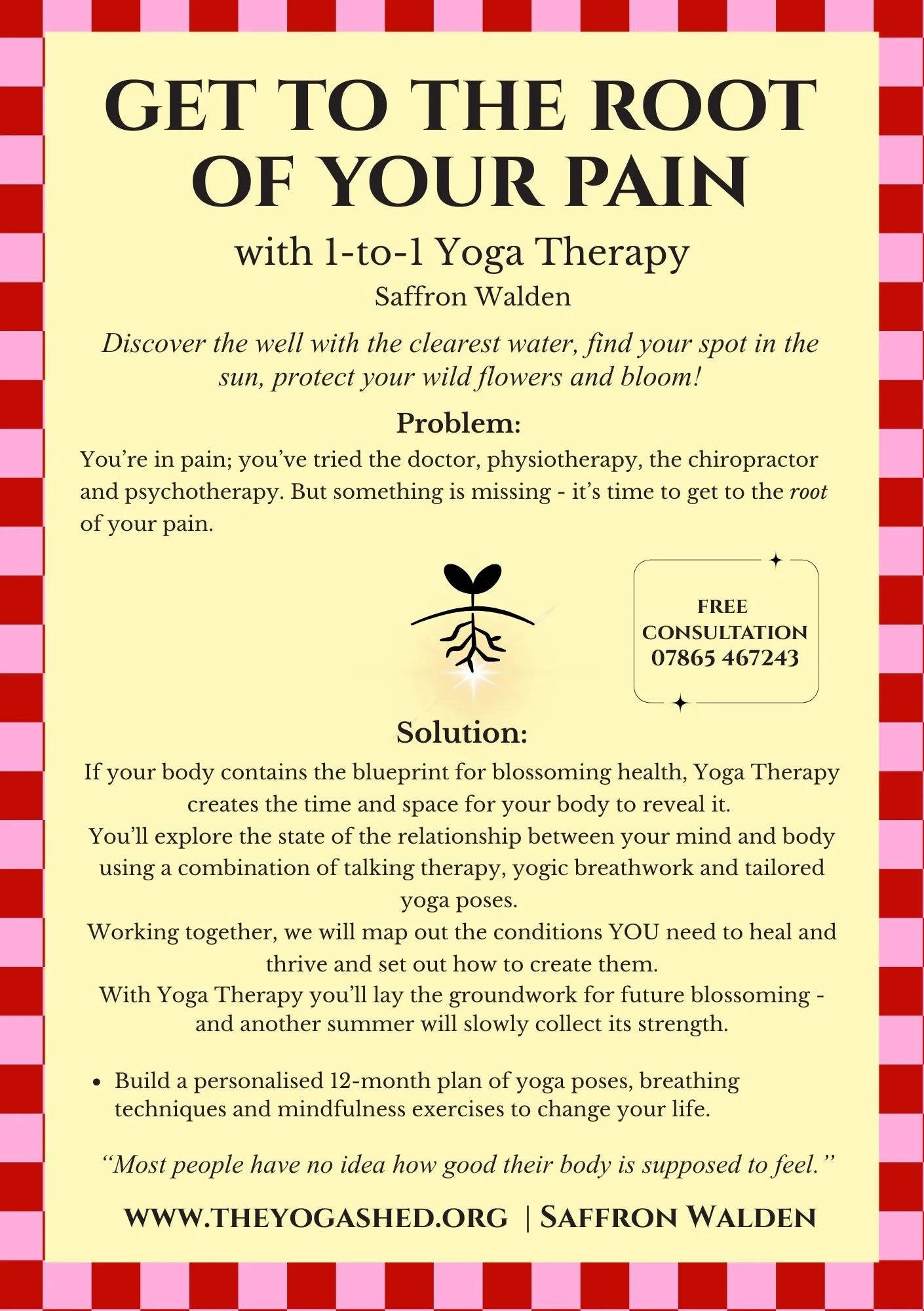 Yoga Therapy helps you establish a more sensitive relationship with your body through self-aware movement, breathing and mindfulness. Grow new habits that keep you healthy for longer.